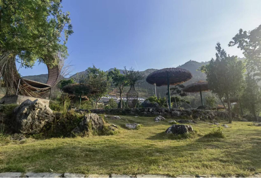 ▲?如今的三峽村,為游客們提供了非遺項目體驗、古村落觀光等一站式體驗。圖為三峽村一處綠化景觀。資料圖片