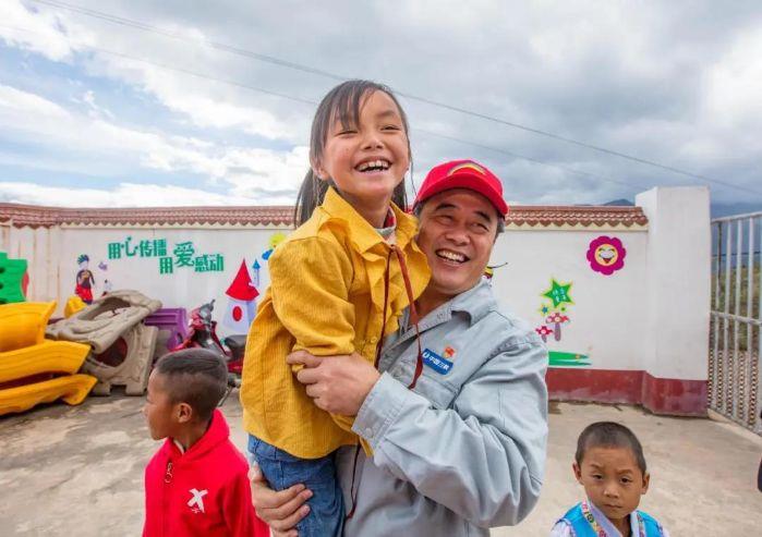 ▲?白鶴灘工程建設(shè)者與八巖村小學(xué)學(xué)生