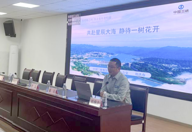 ▲“央企青年進(jìn)校園”活動(dòng)中,鄭洪春正在分享成長故事。