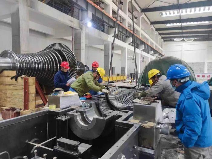 湖北宜昌垃圾焚燒發電項目正在進行汽輪機安裝? 攝影:嚴清